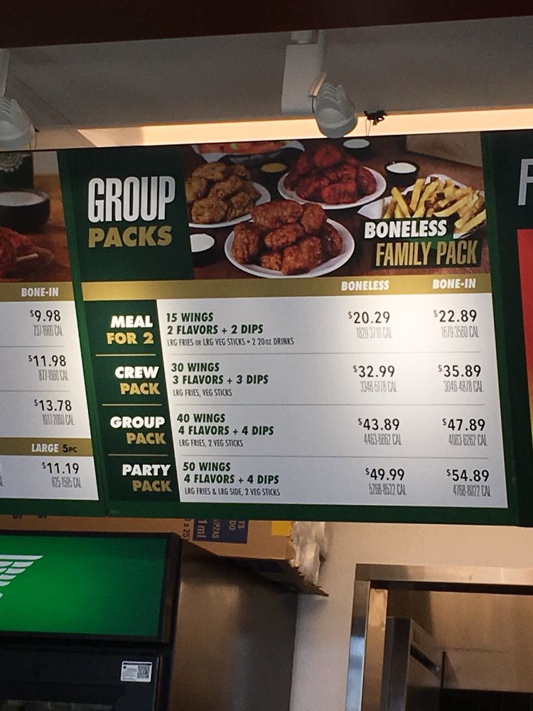 100 Boneless or Classic (Bone-In) wings with up to 6 flavors. (Dips not included)